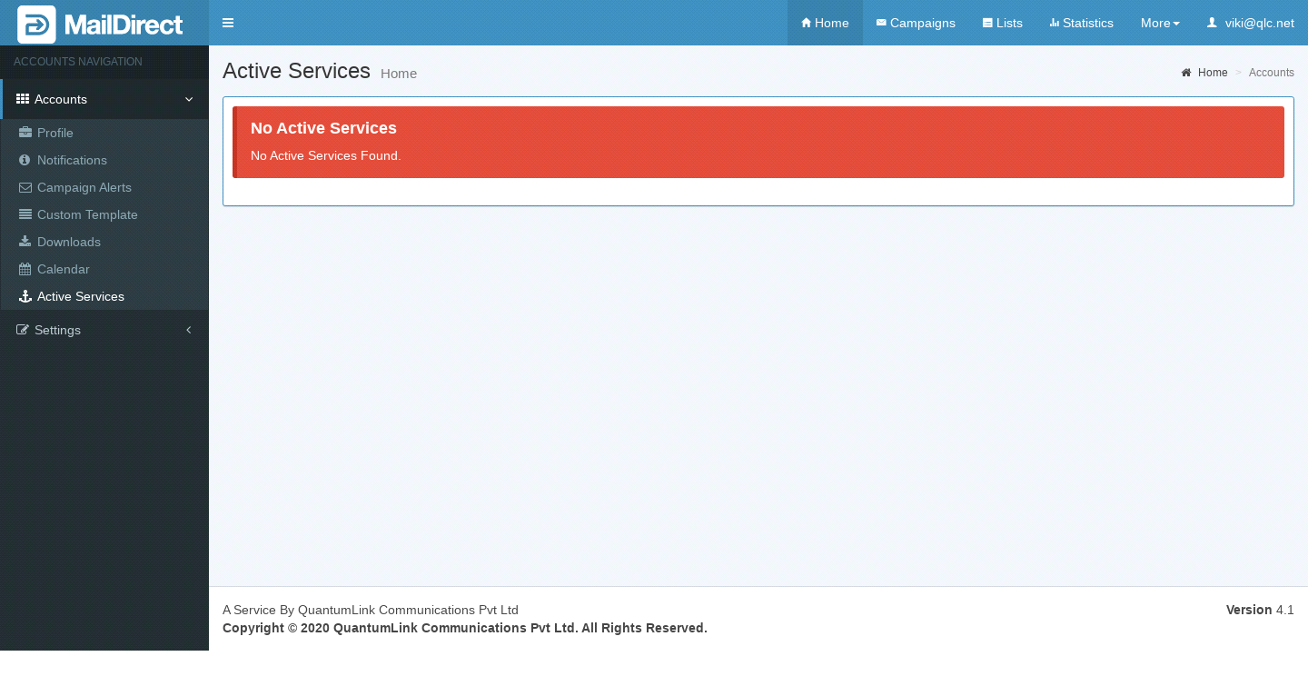 In case the services are not acitive, then Maildirect will display the No Active Services Found screen.