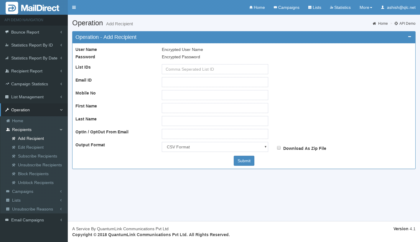 - The API used to add new recipients and mapping Recipients to the List.