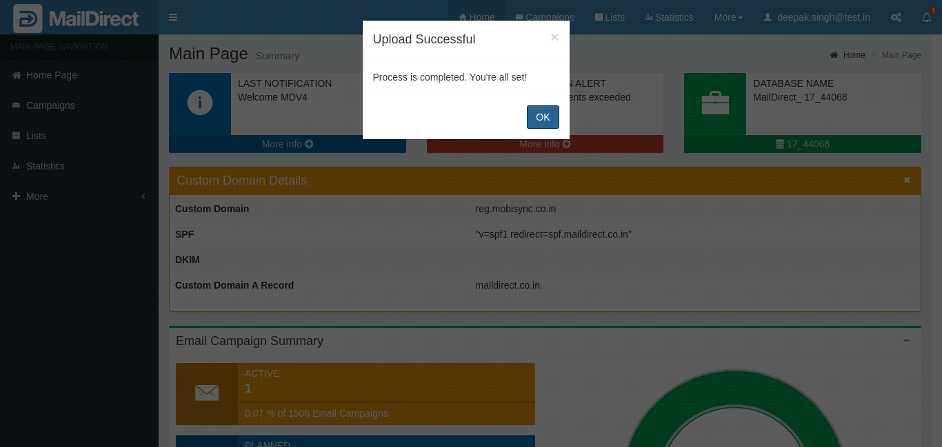 Figure : Upload Successful > Alert Message After the process is completed, the notification is updated, as shown in the figure below.