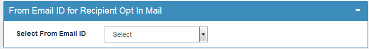 This area displays from email ids for recipient opt in/opt out mail. Available fields are dropdown list which contains From email ids for recipients opt- in email. If this dropdown is clicked MailDirect displays the List of from email ids for recipient opt in mail.
