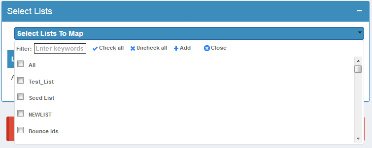 Click this dropdown to select the lists to which the selected recipients are to be added. If this dropdown is clicked MailDirect displays the Select List Screen.