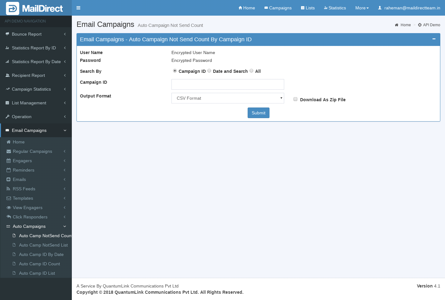 - The API Retrieves the list of Auto Campaign Not Send count by Campaign ID.