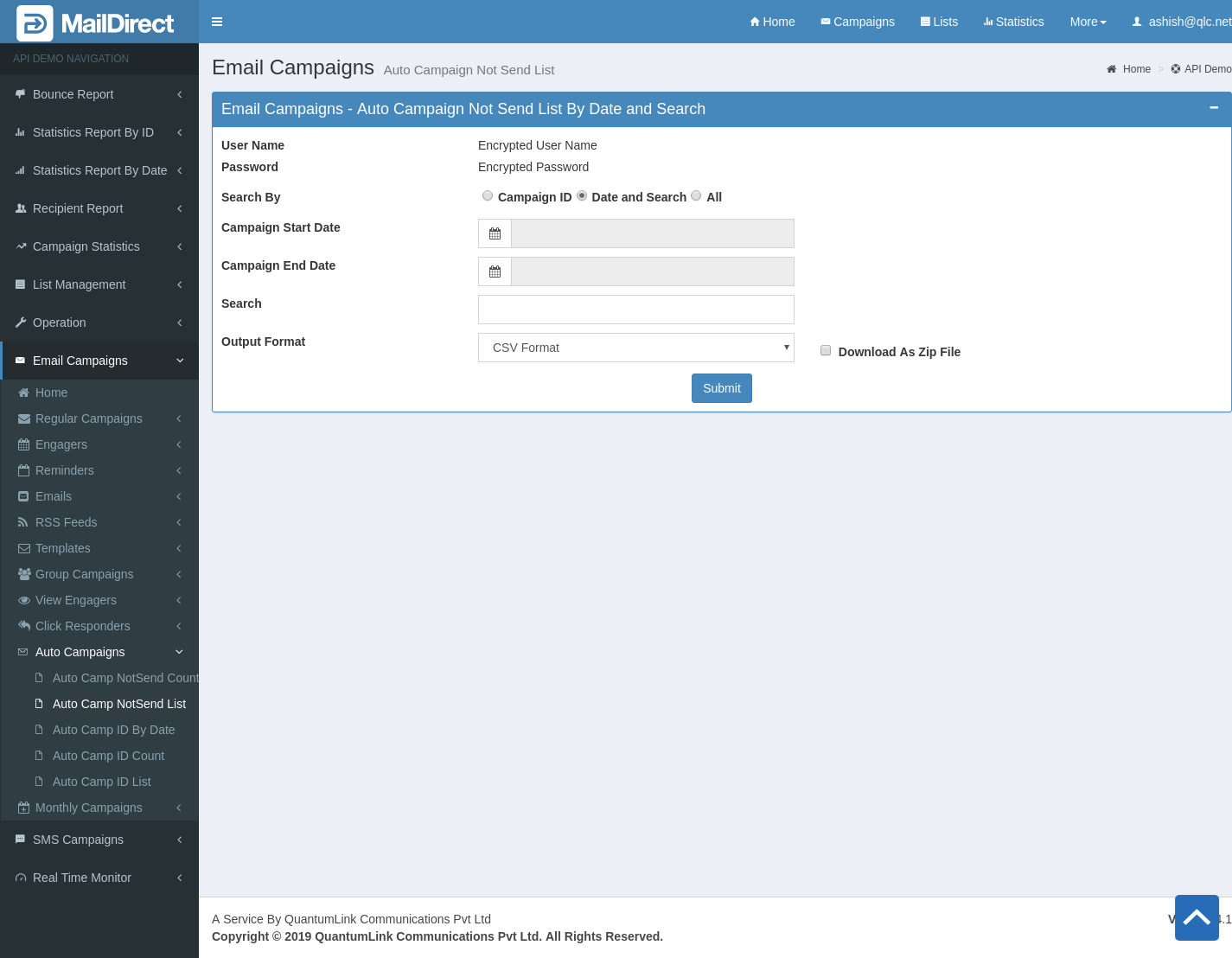 - The API Retrieves the list of auto campaign not send details by date and search.