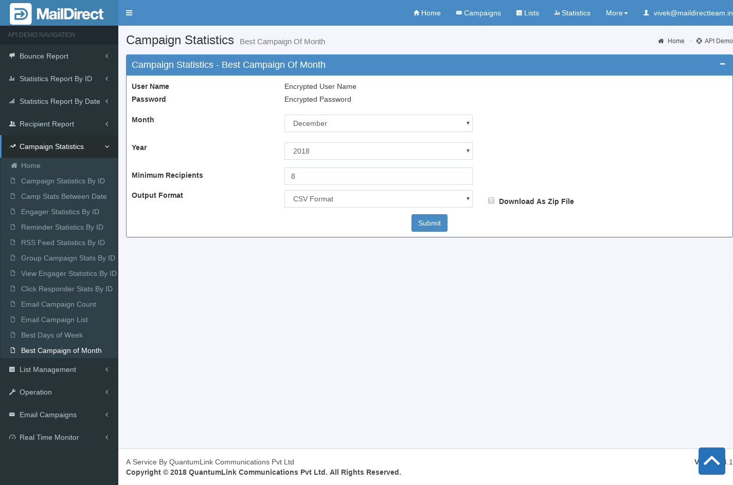 - The API Retrieves the Best Campaign of Month Details based on the Month, Year and Minimum Recipients.