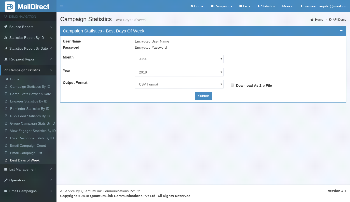 - The API Retrieves the Best Days of Week Details based on Month and Year.