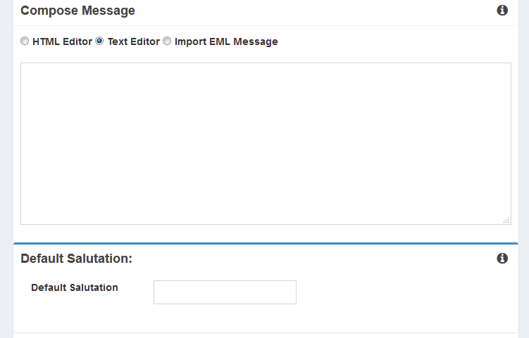 Working with Campaign ManagerManage TemplateCreating New TemplateTemplate Wizard – Compose Message Compose Message by Text Editor Compose Message by Text Editor Mail Direct displays the Compose Message screen with the Text Editor option on selecting Text Editor. Figure : Creating Email - Text Editor