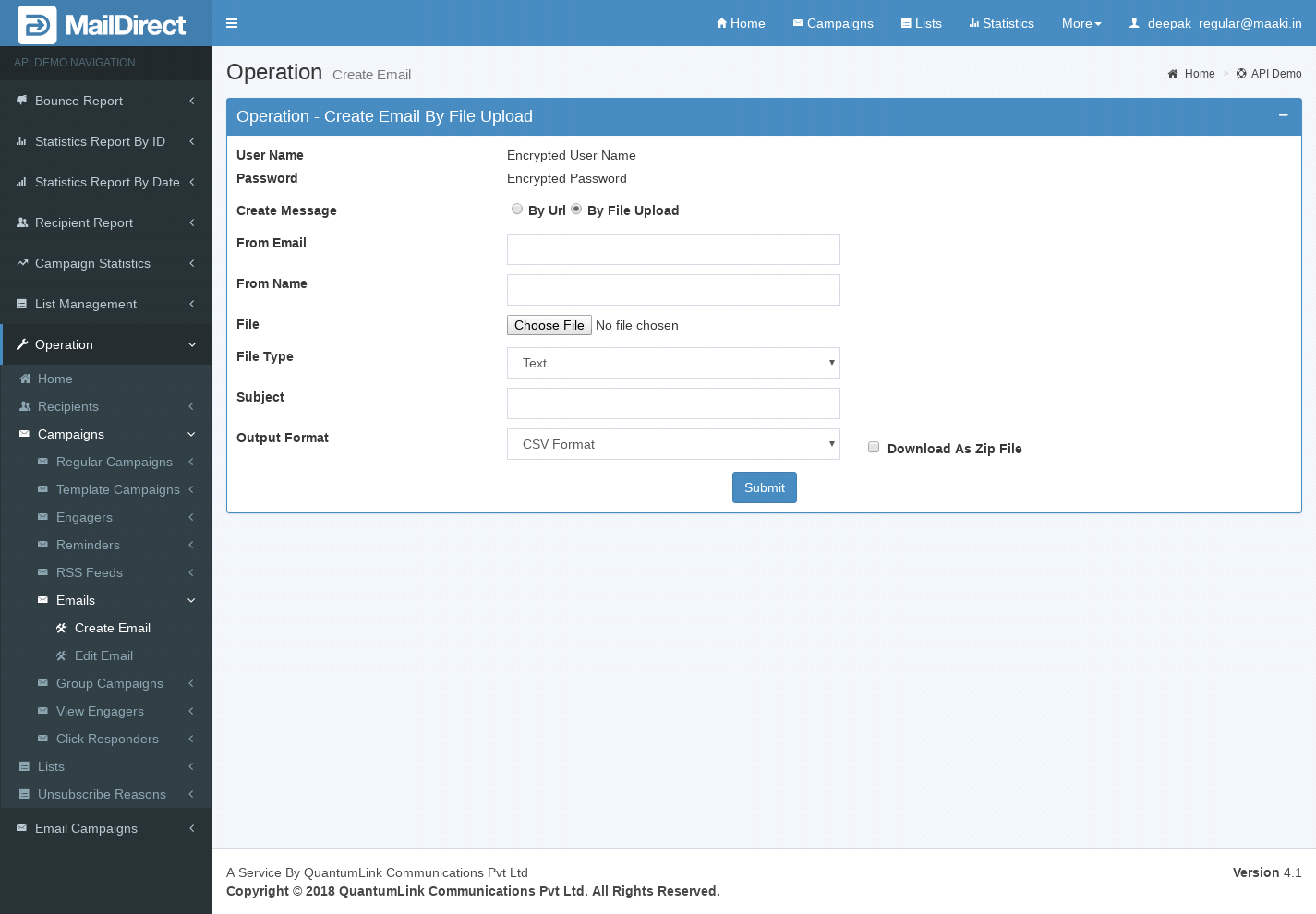 Figure : Create Email by Upload file option