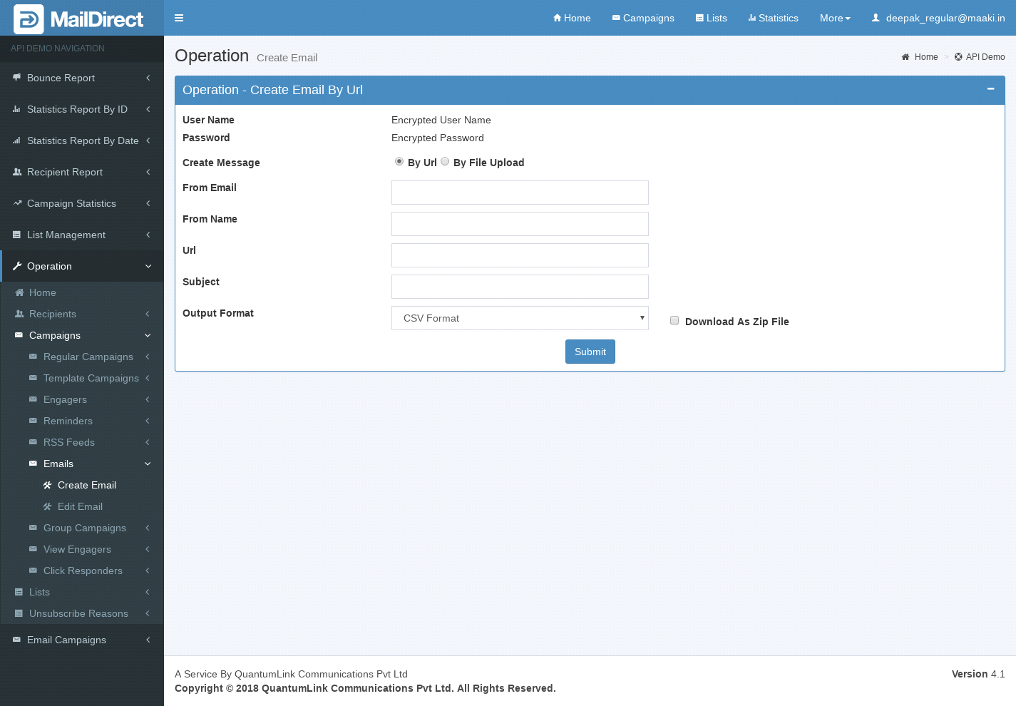 - The API is used to create email.