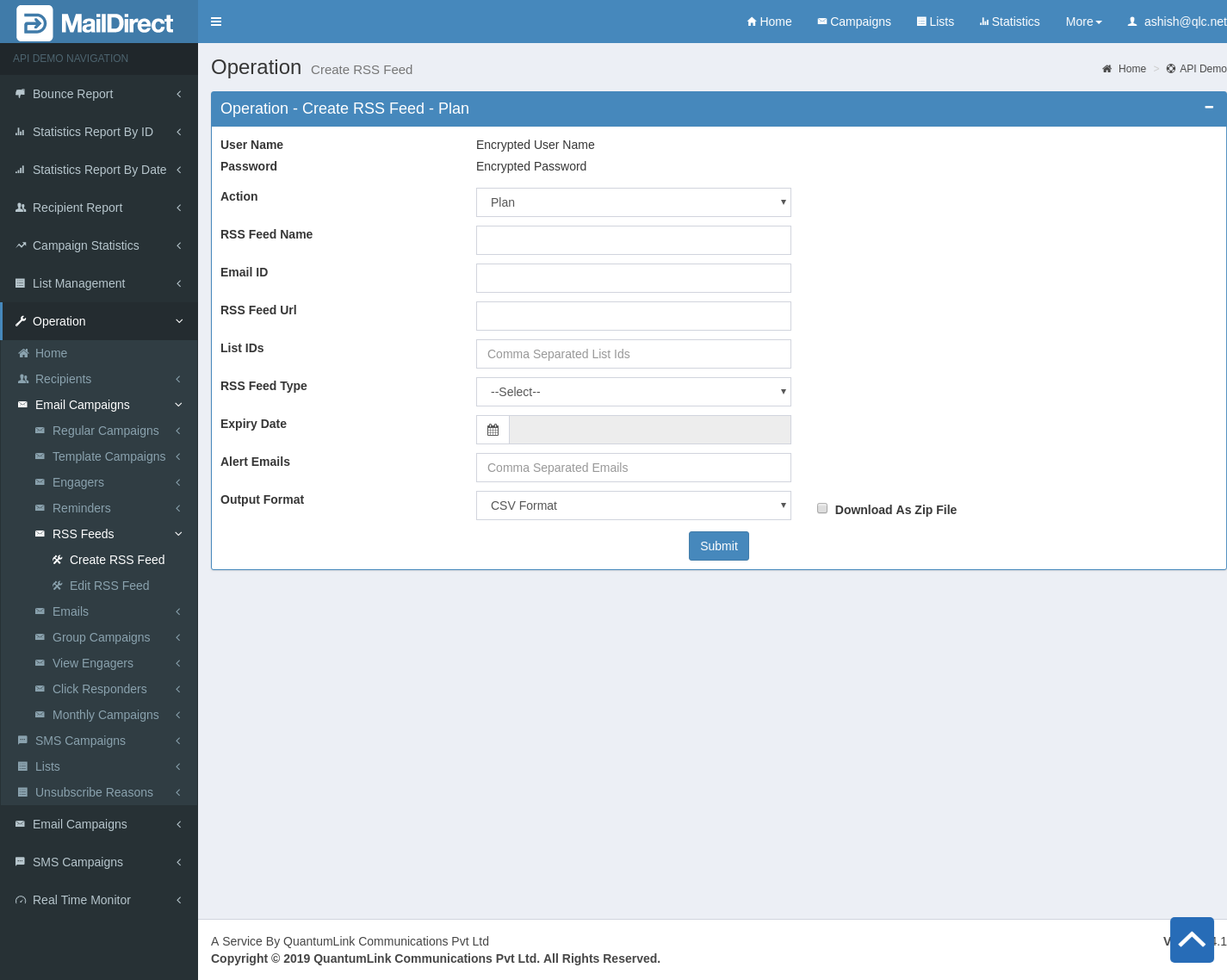 - The API to Create RSS Feed Campaign.