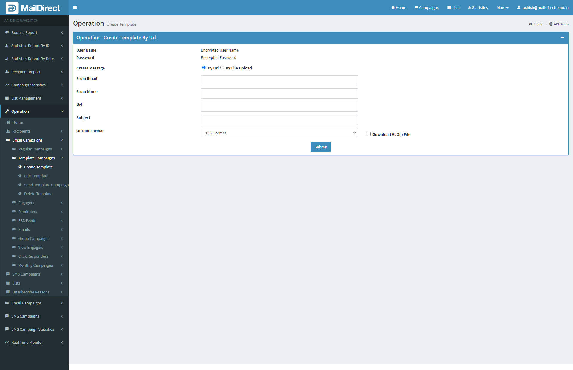 The API is used to create template.
