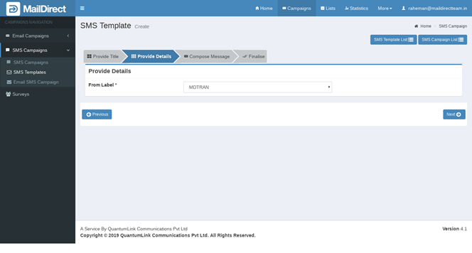 Select Label (sender name) from which the sms template campaign will be sent. |