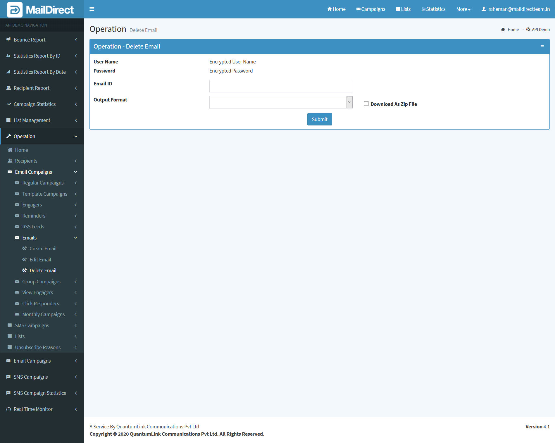 - The API is used to delete emails based on Email ID.