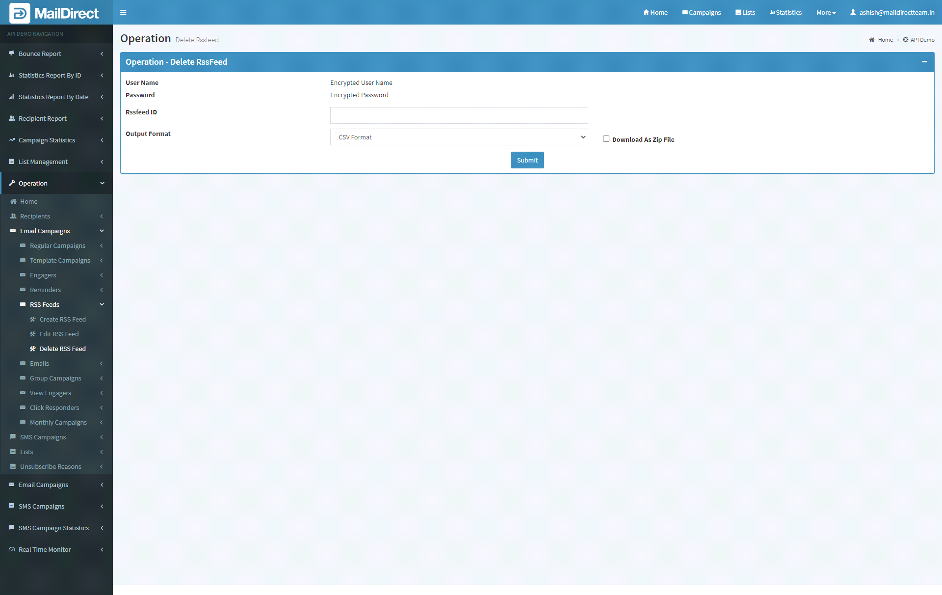 - The API is used to delete RSS Feeds based on RSS Feed ID.
