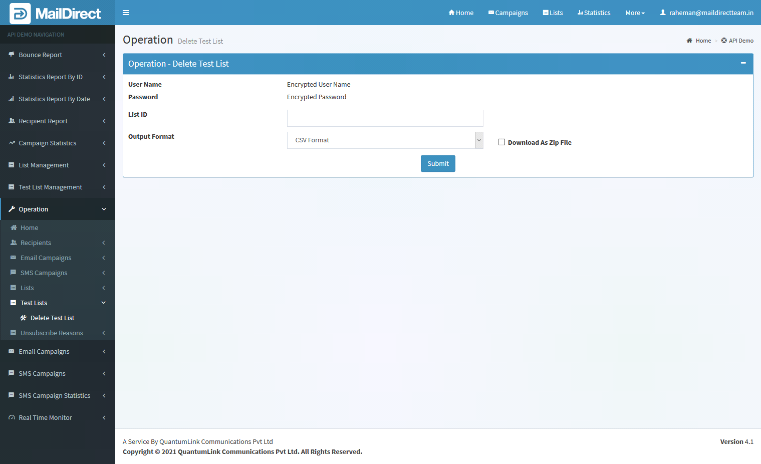 - The Details File downloaded in the form of zip if Download As Zip File is checked or download simple text file.