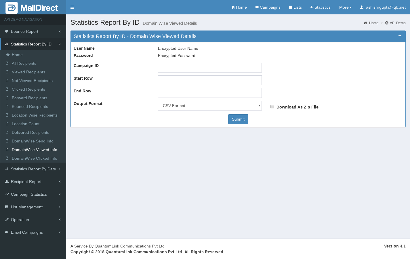 - The API Retrieves the Domain Wise View Details based on the campaign id.