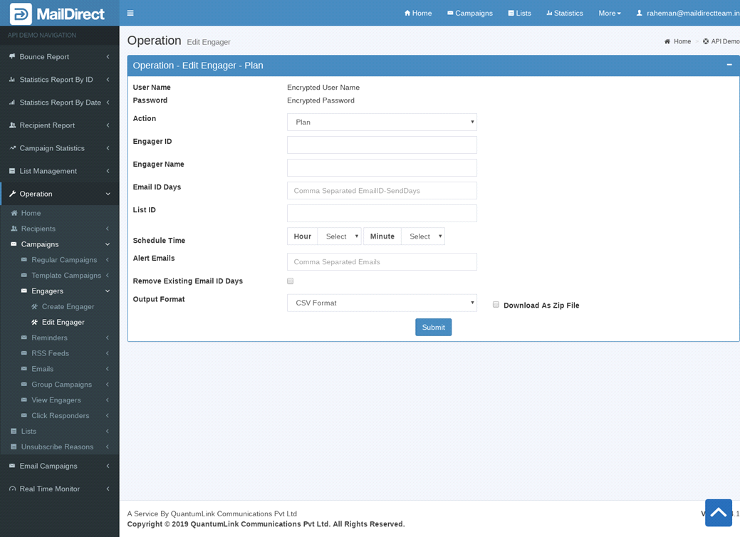 - The API is used to Edit and plan/activate engagers based on Engager ID.