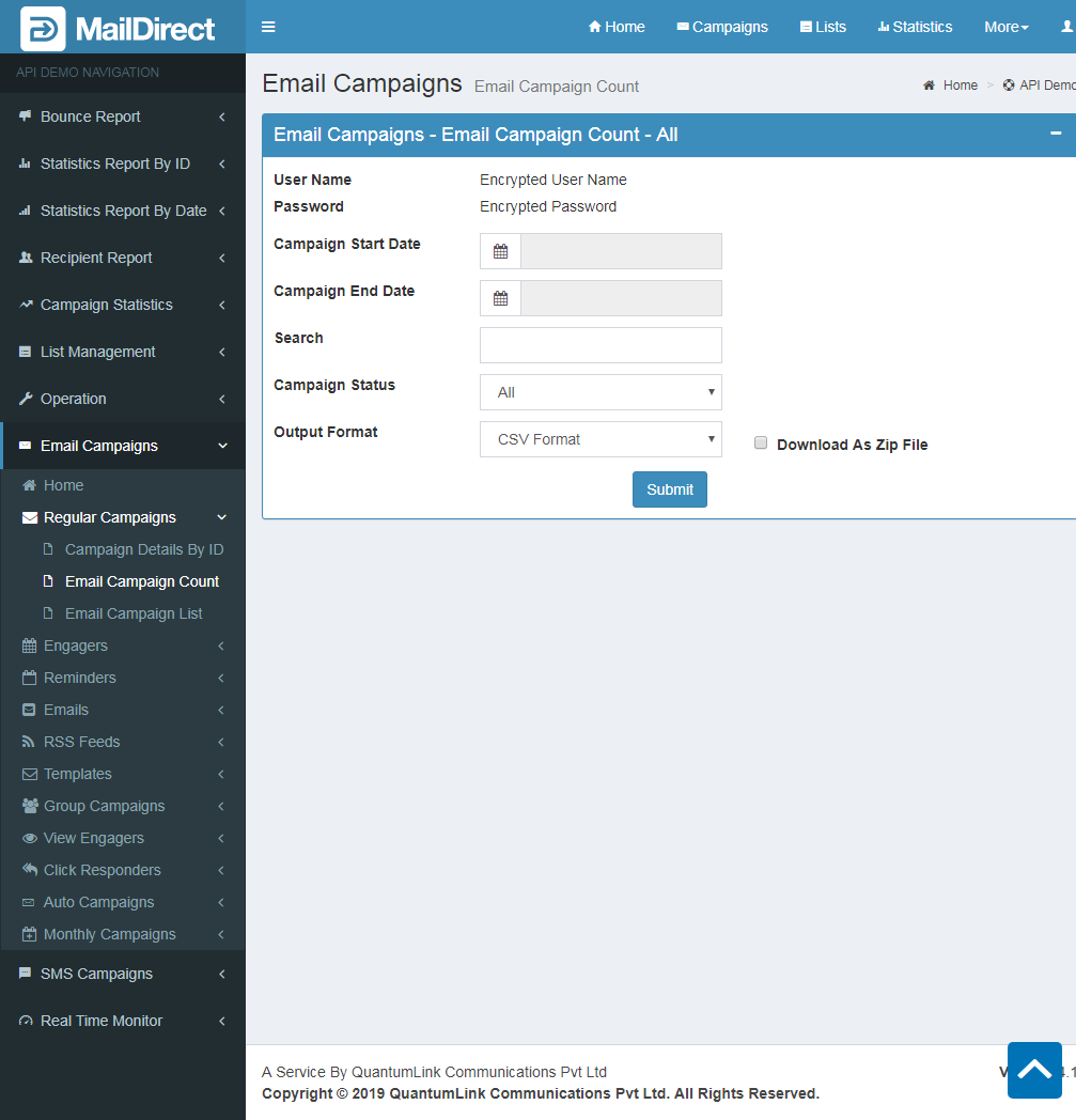 - The API Retrieves the list of Email Campaign Count Details based on the status.
