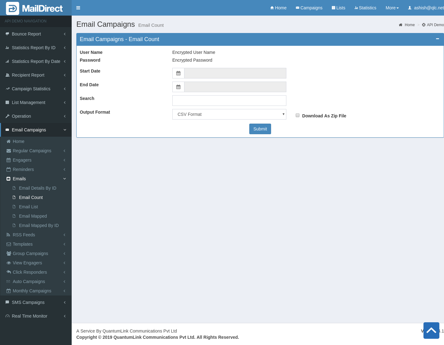 - The Details File downloaded in the form of zip if Download As Zip File is checked or download simple text file.