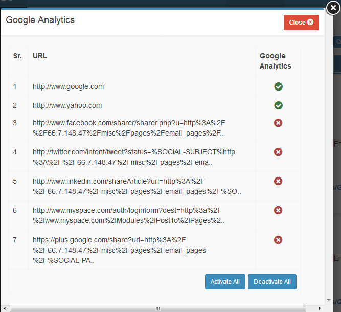 button disables all the links from Google Analytics.