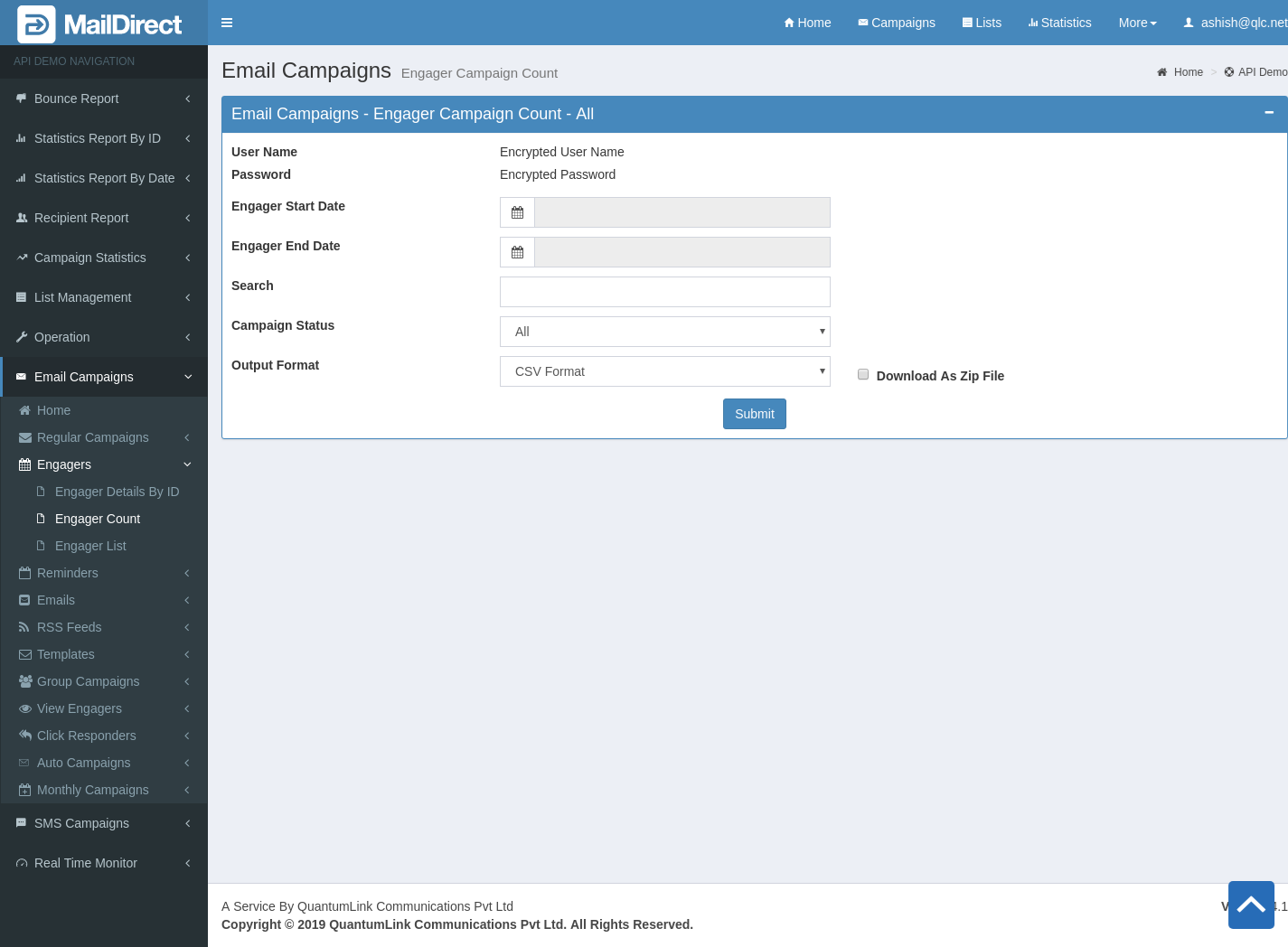- The API Retrieves the list of Engager Count based on status – All, Active or In Active.