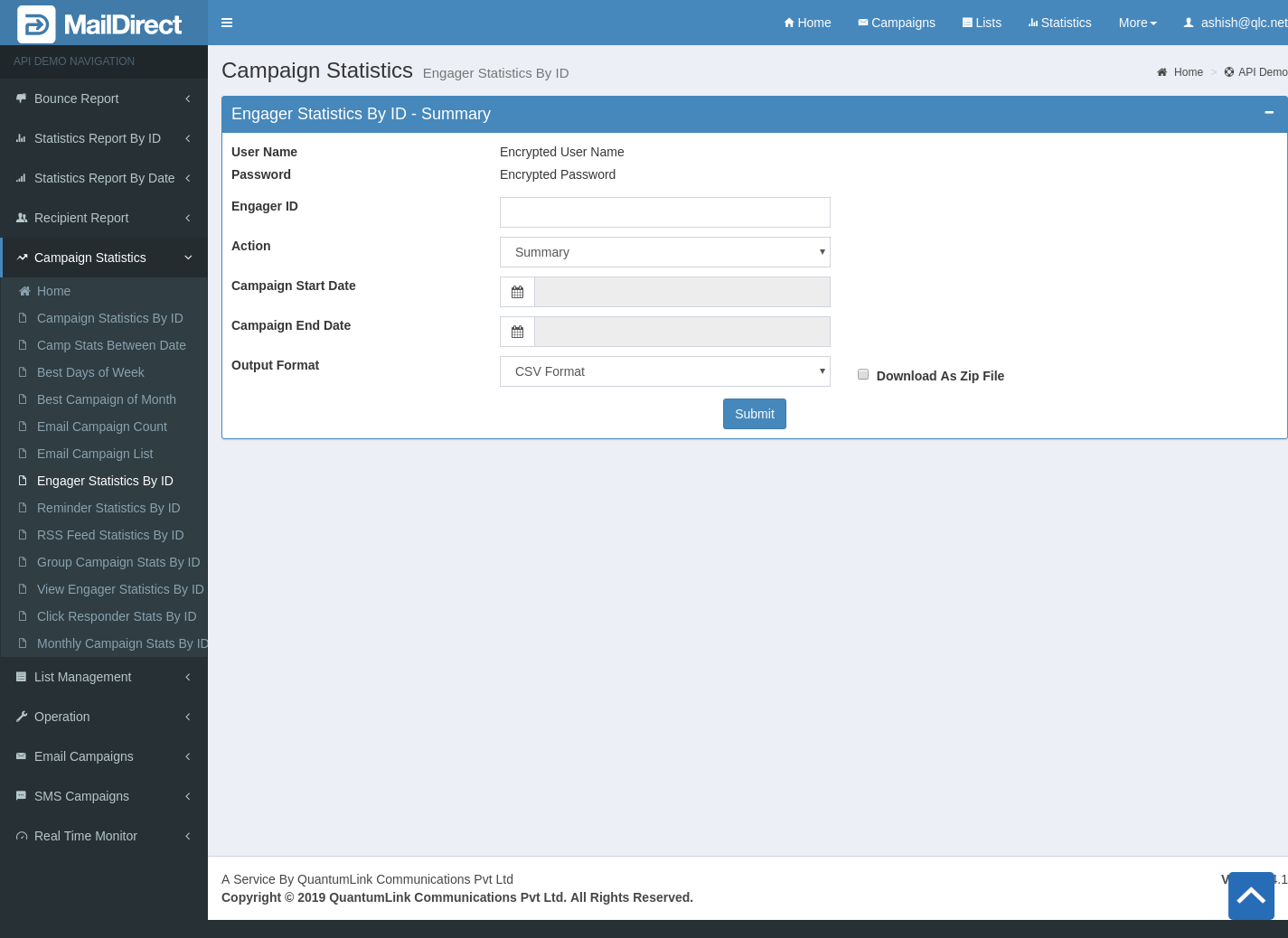 - The API Retrieves the Engager Statistics Summary/Details based on Engager ID and campaign start and end date.