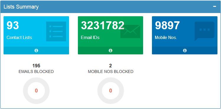 The list summary provides the details of total number of lists which can be mapped to campaign, Total Email IDs and Total Mobile Nos.