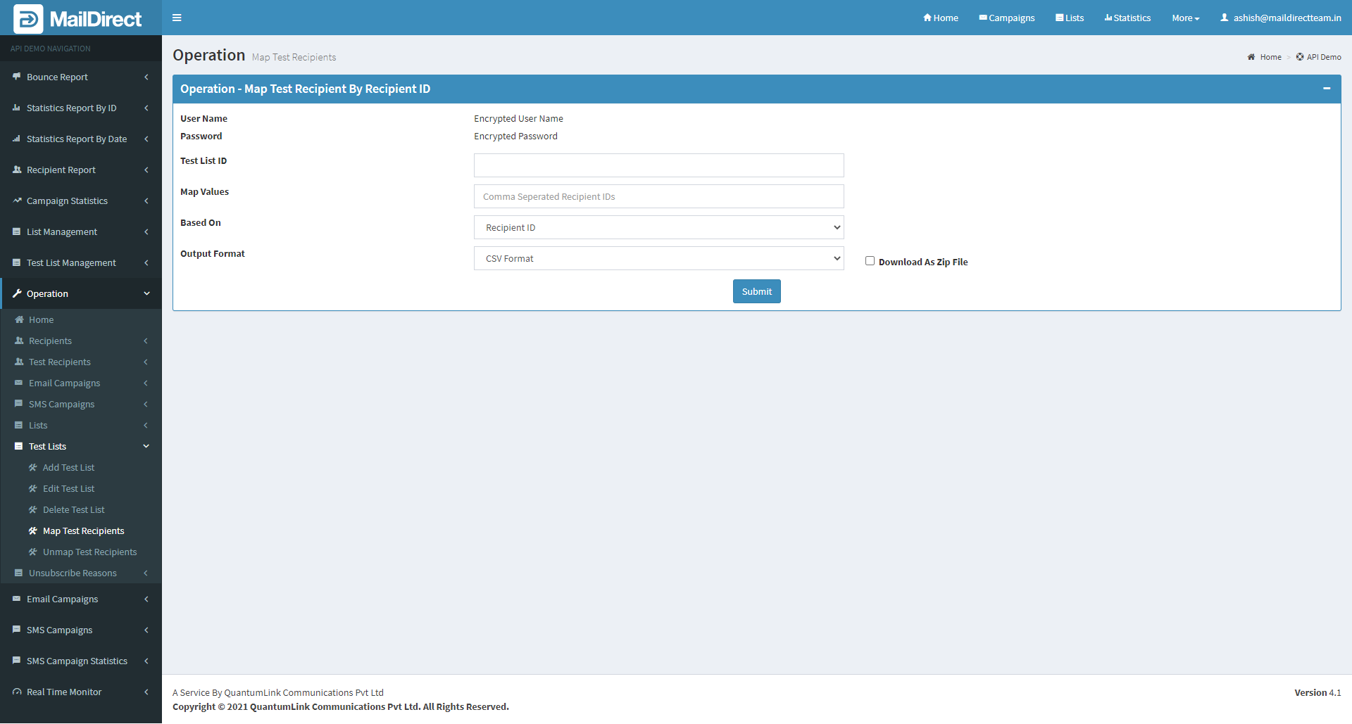 - The API is used to map test recipients to test lists based on Test List ID.
