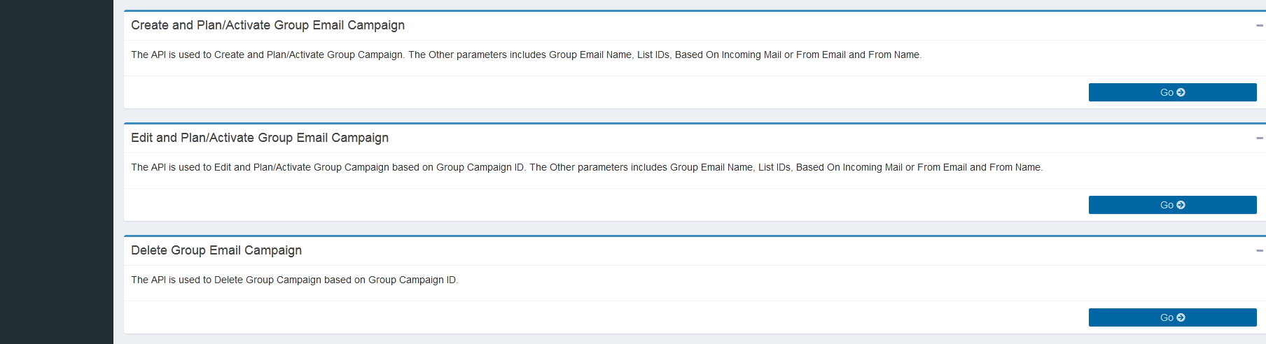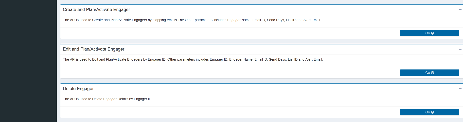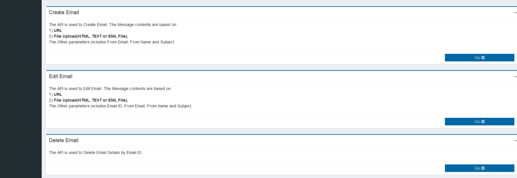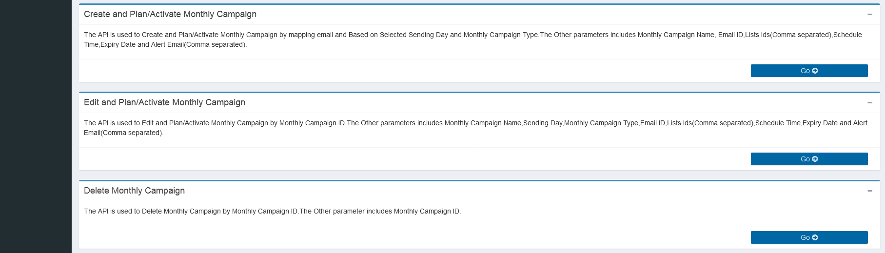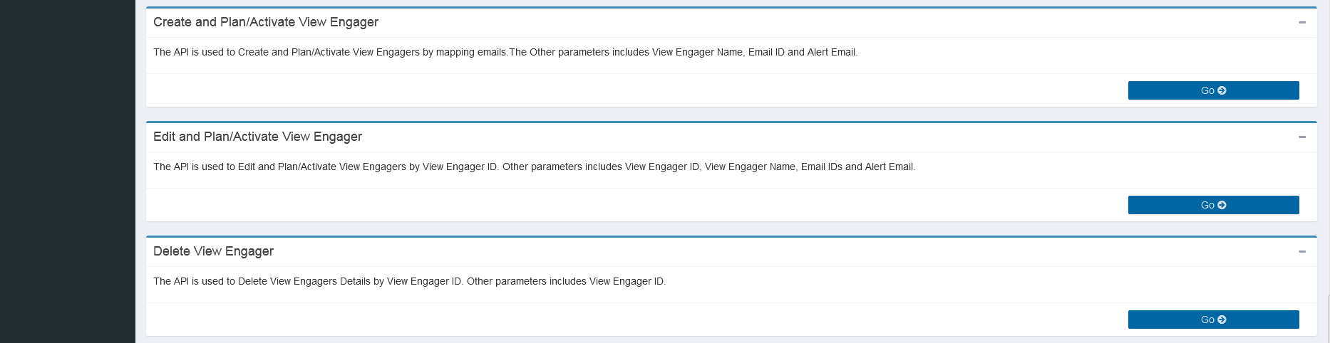 This page provides the details of the functionality of the API's in Operation Section