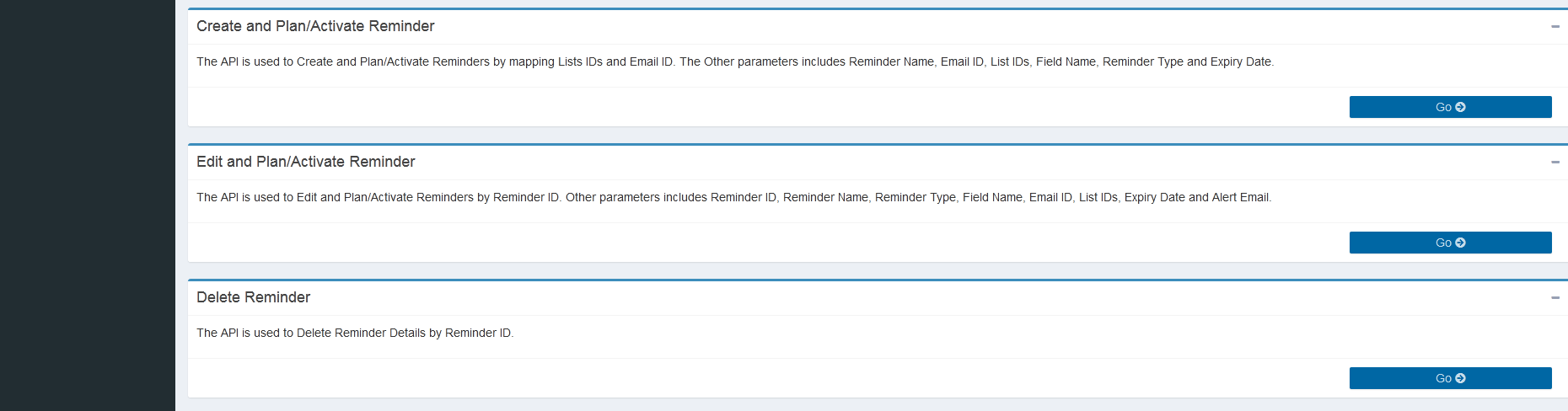 Figure : Operation – Reminders - Home page