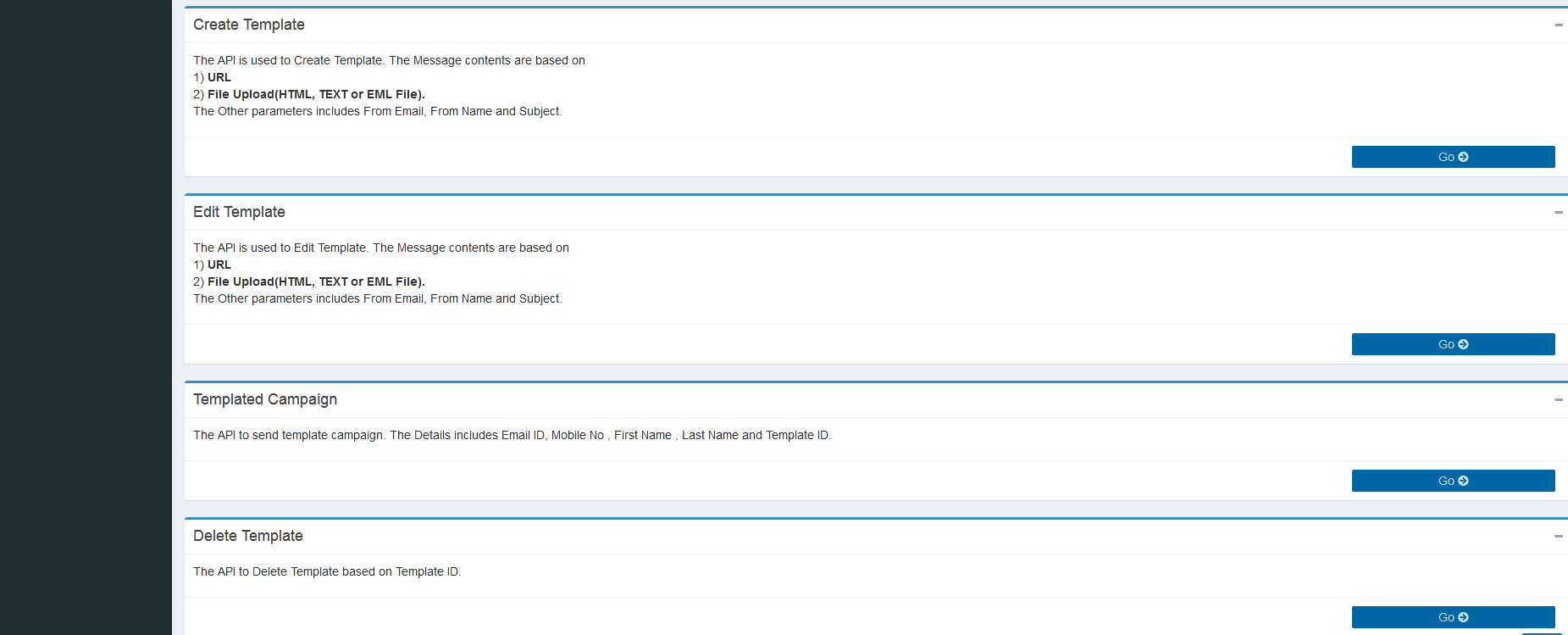 Figure : Operation – SMS Template - Home page