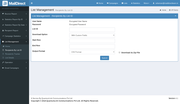 - The API Retrieves the list of Recipients Details based on the List ID.
