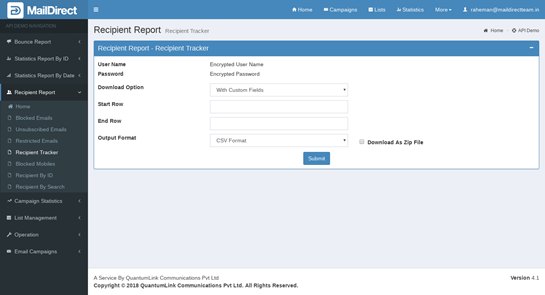 - If start row and end row value entered, recipients record will be downloaded within start row and end row value range.