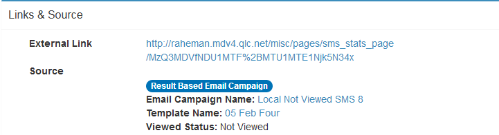 Figure : SMS Statistics - Links & Source – Result Based Email Campaign