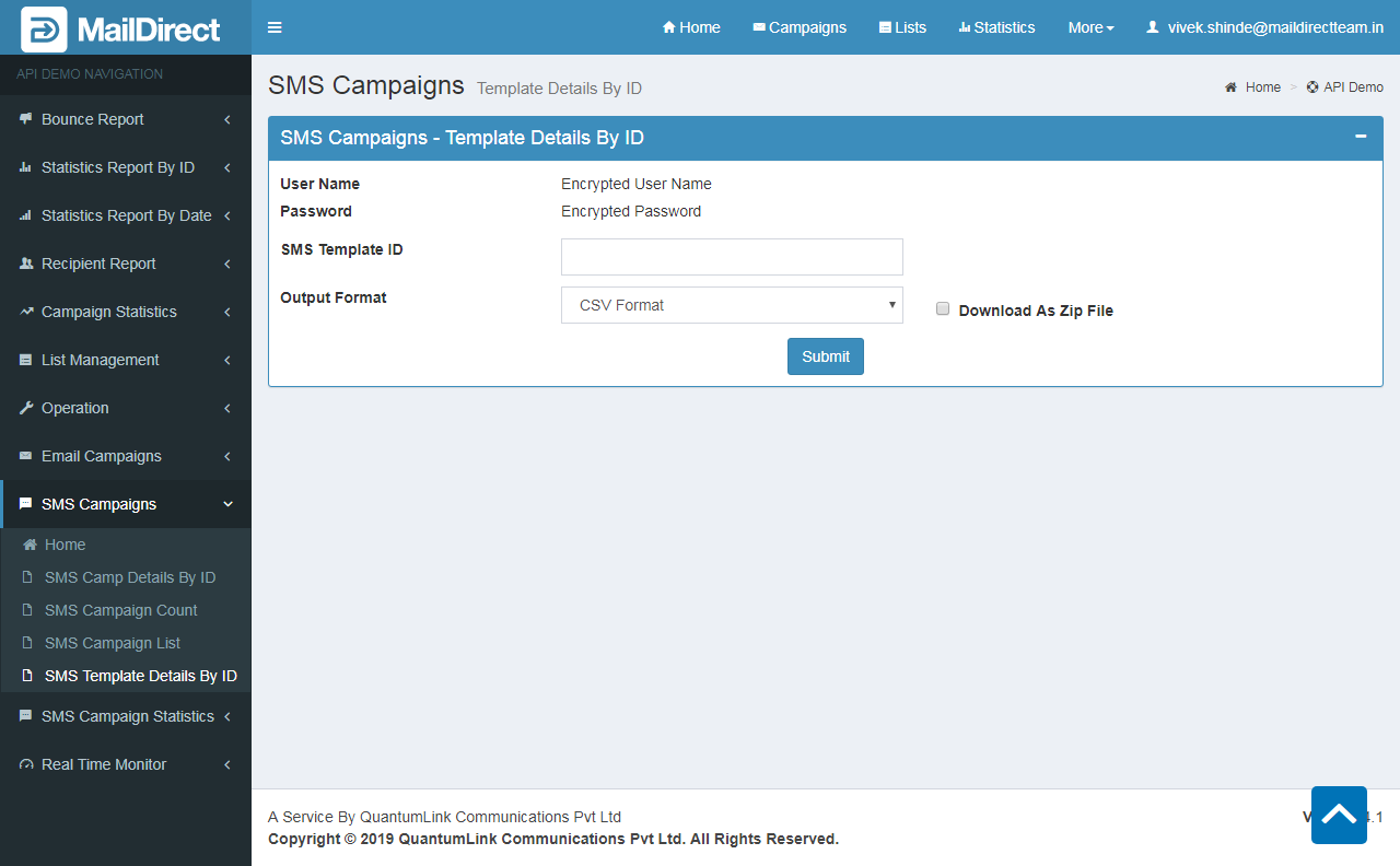 SMS Template Detail By ID