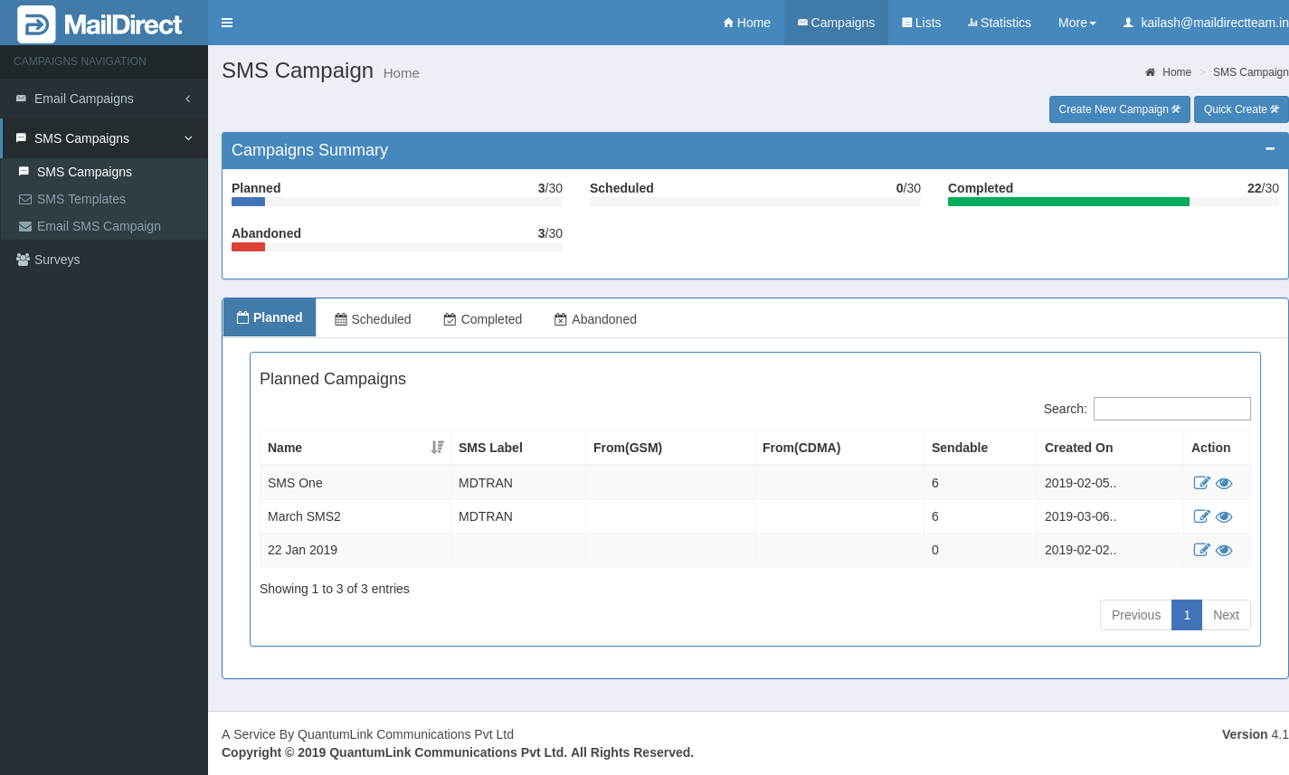 Figure : SMS Campaign List-Planned