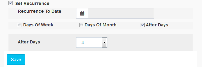 If After Days option is selected then Days drop down option is visible. At least one option can select. The Schedule campaign will be created based on after Days selected.