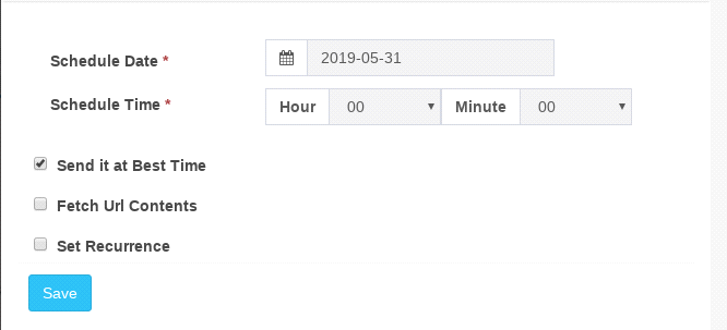 If Send it at Best Time option is checked, the campaign will be automatically scheduled at 00:00 AM on scheduled date, campaign will be send between 00 AM to 23 PM at best time for recipient.