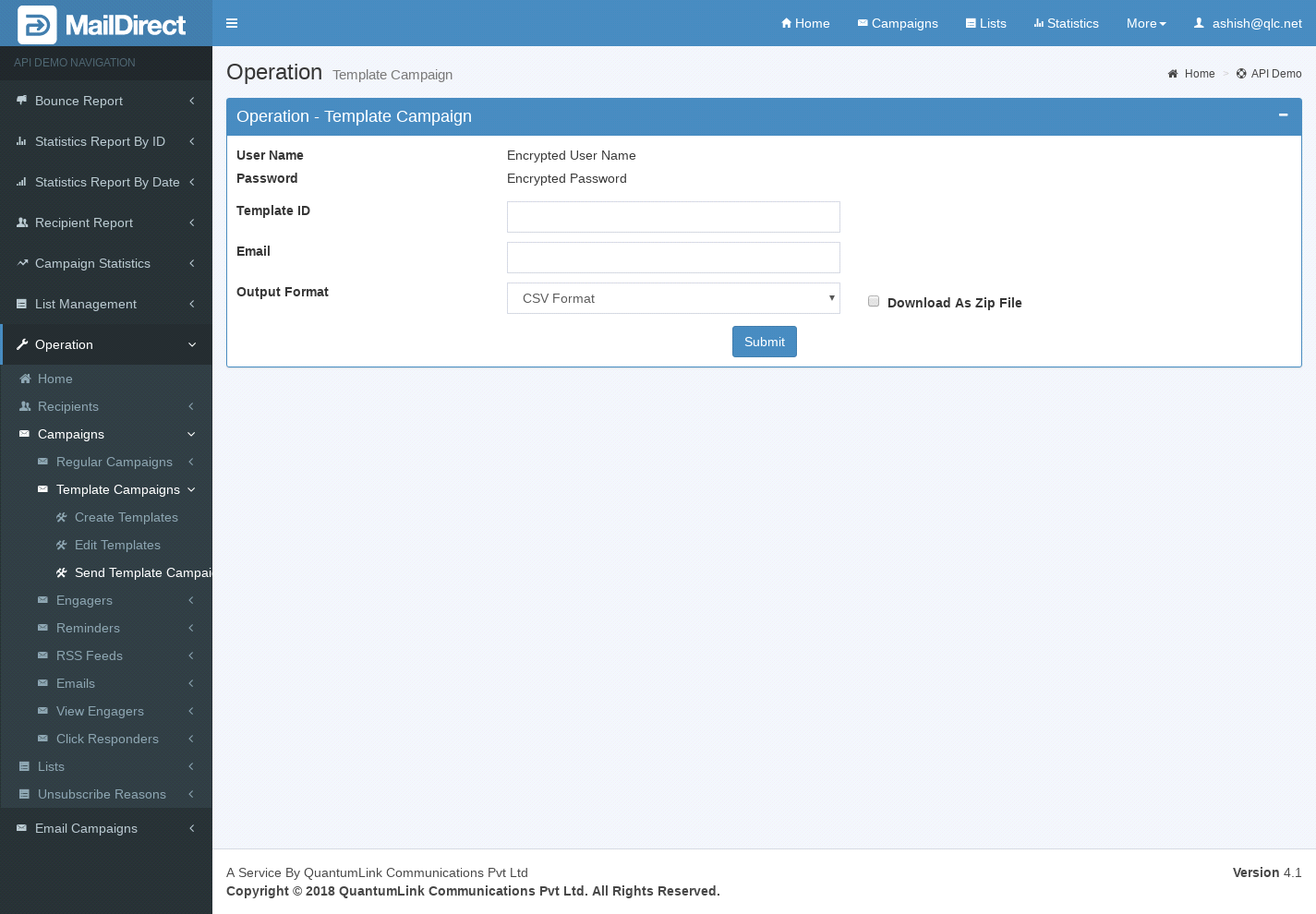 - The Details includes Email ID, Mobile No, First Name, Last Name and Template ID.