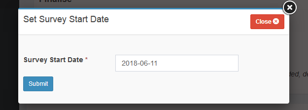 After Entering/selecting the Survey Start Date and Clicking Submit will schedule the Survey and the Finalize section will appear as: