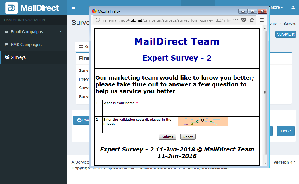 Figure : Create Survey-Finalize Page Survey with option – Combined