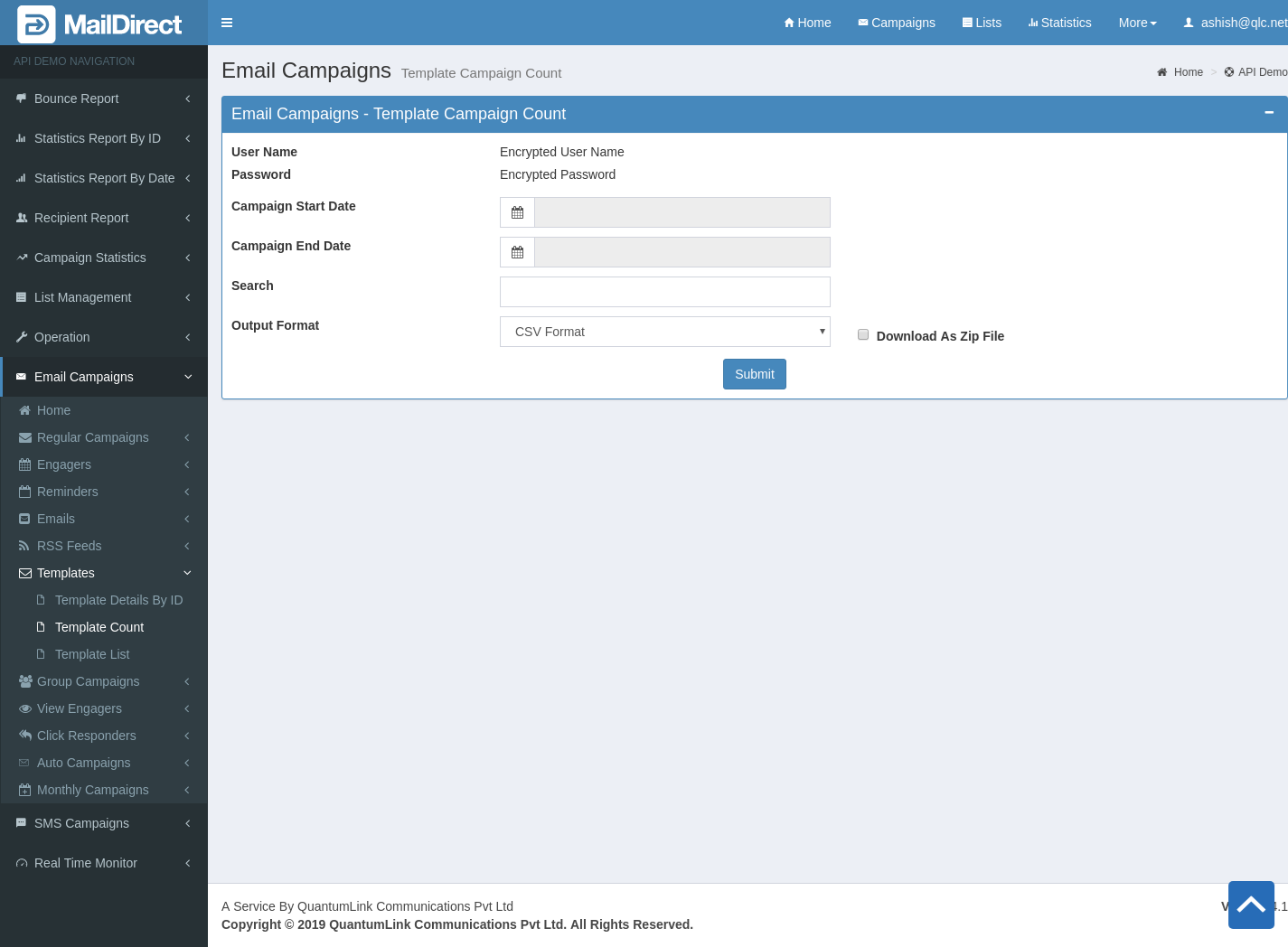 - The Details File downloaded in the form of zip if Download As Zip File is checked or download simple text file.