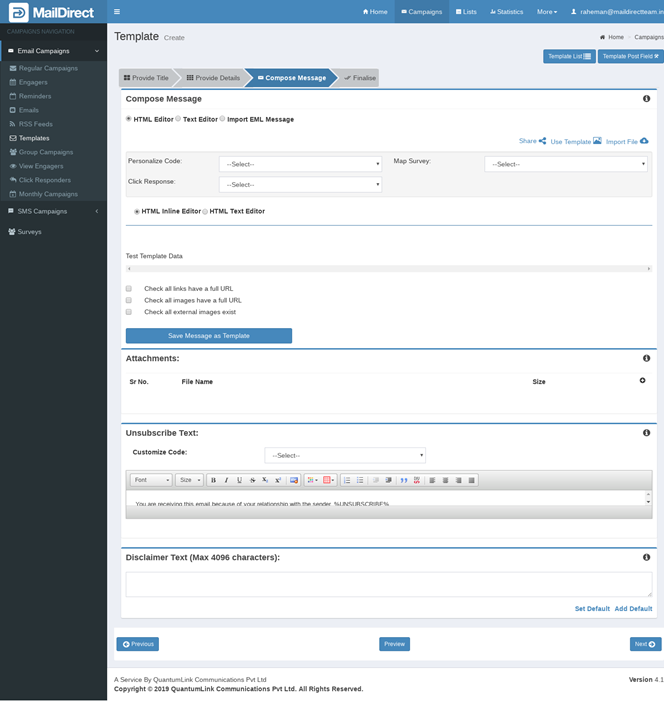 Figure : Create Template-Compose Message