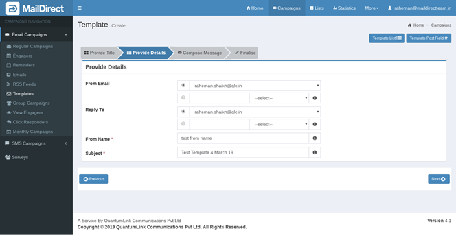 Type an appropriate email ID to which all the replies for the campaign will be received. This field is mandatory. |