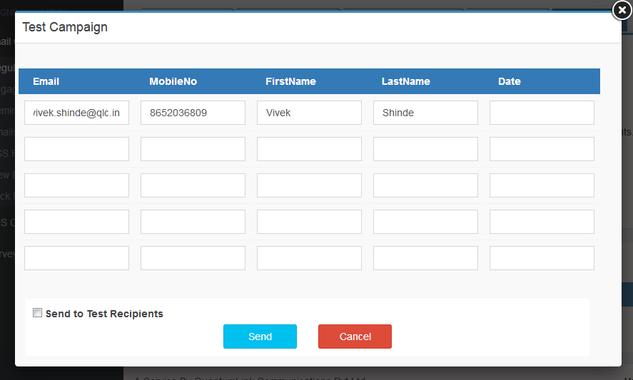 Type an appropriate mobile number of the recipient of the campaign under test. |