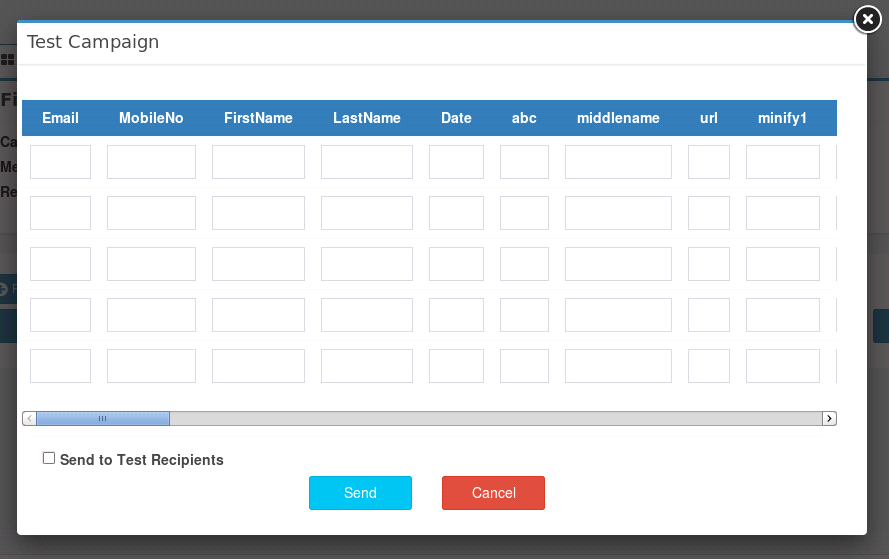 Figure : Test Sms Campaign Pop-Up