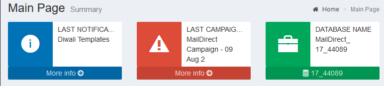Provides partial description of the last Campaign Alerts and on clicking More Info the page is redirected to Accounts >> Campaign Alerts