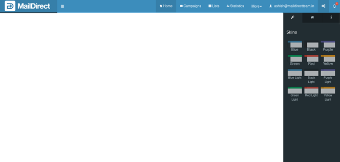 In Menu Bar the theme option is available to change theme/skin color of this panel at Home Page.