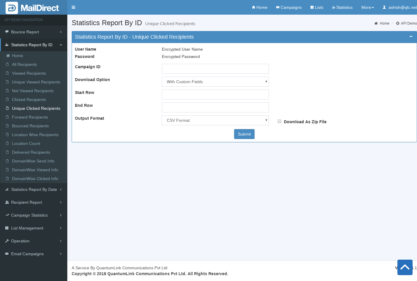 Unique Clicked Recipients Report By Campaign ID