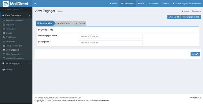 - Mail Direct displays the View Engager Campaign Wizard Email List Map screen.